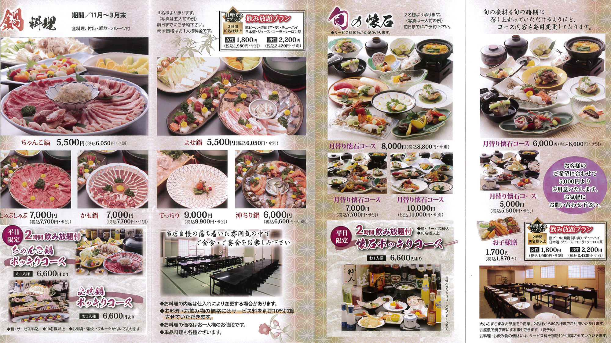 年始は1/2(水)から出前のみ、1/4(金)からお座敷を営業致します。